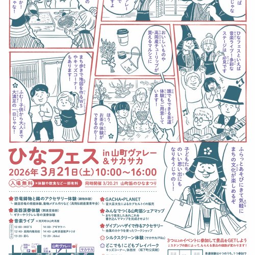 幅広い世代が気軽に文化を体験できるイベント「ひなフェスin山町ヴァレー&サカサカ」を開催します!(3月21日)